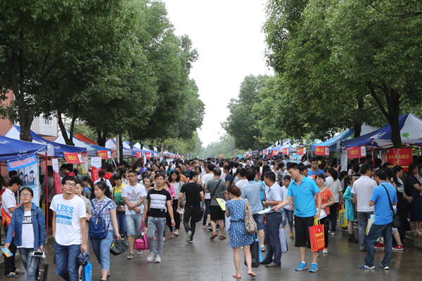 此次高招咨詢會(huì)受到學(xué)生及家長的廣泛關(guān)注,雖然天空下起了小雨,但這依然抵擋不住考生和家長的咨詢熱情,仍吸引了3萬多人前來咨詢報(bào)考問題。上午八時(shí),高招會(huì)現(xiàn)場人頭攢動(dòng),不少招生展臺(tái)前已經(jīng)排起了長龍,有的家長挨個(gè)咨詢意向?qū)W校的招生計(jì)劃、分?jǐn)?shù)線,有的考生站在展臺(tái)旁,仔細(xì)傾聽,用紙筆記錄各學(xué)校的情況,不少熱門高校展棚里外被圍得水泄不通,出現(xiàn)了家長扎堆取經(jīng)的現(xiàn)象。各大高校用展板和傳單的形式將自家的亮點(diǎn)和優(yōu)勢(shì)展現(xiàn)出來,到場的招生代表耐心回答考生和家長提出的問題,介紹安徽新華學(xué)院的情況以及今年的招生政策,現(xiàn)場氣氛十分火爆。