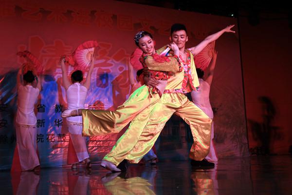 本次“鼓鄉(xiāng)情韻”高雅藝術(shù)進校園活動由安徽省教育廳主辦,安徽新華學院承辦。滁州學院花鼓藝術(shù)團的藝術(shù)家們?yōu)榘不招氯A學院師生帶來了一場精彩絕倫的視聽盛宴,不僅讓廣大師生零距離感受到了鳳陽花鼓的獨特藝術(shù)魅力,更豐富了學生的精神生活,營造出和諧的校園文化氣氛。